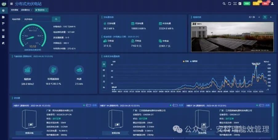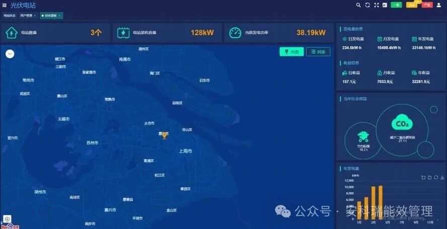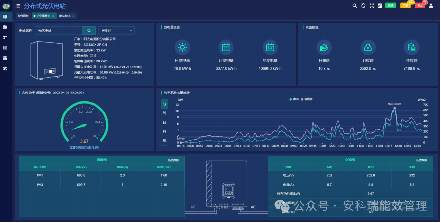 发电功率监测;装机容量记录;发电量统计;光伏收益计算。