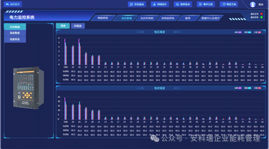 针对分布式光伏发电并网提供高精度的电能质量监测与分析,针对并网点的电压谐波、电流谐波、电压间谐波、电流间谐波、三相电压不平衡度、电压波动与闪变及直流分量进行实时监测与分析,为用户的微电网系统运行提供可靠保障。