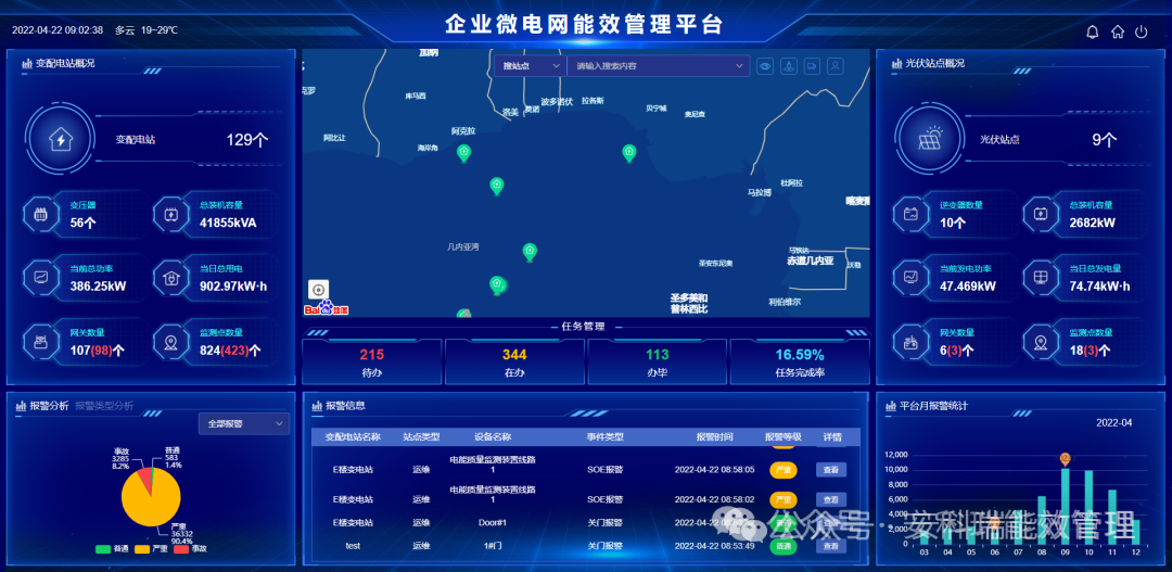 平台能对变配电过程中出现的故障、各类事件及潜在隐患等进行实时预警,进而为用户提供安全有效、线上线下无缝衔接的变电所运维监控服务,守护变配电系统的稳定运行。