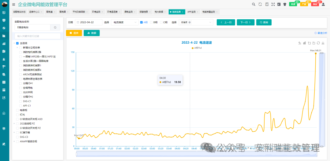 采集监测2-32次谐波含有率情况,协助用户分析电力系统运行质量状态。