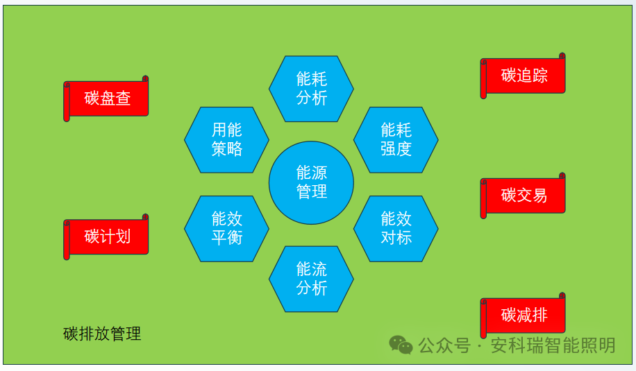 以能源管理为碳管理的基础,精细化管控,建立能耗三级计量,建立能耗强度管理体系,进行能效对标及策略管理。