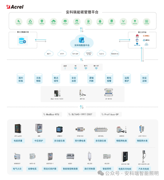 ● 感知层:连接于网络中的各类传感器,包括多功能仪表、充电桩、照明驱动器等。