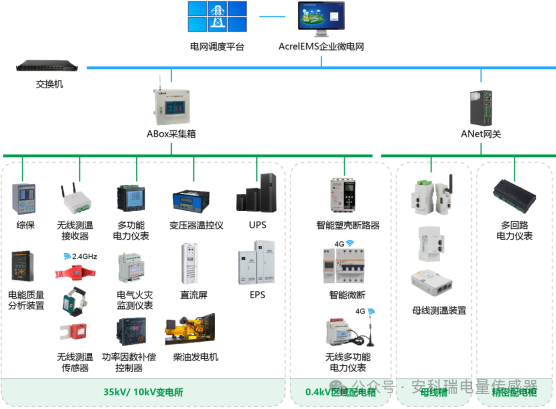 通过在供配电的关键场所、关键设备上安装监测、计量、控制、保护等各类智能传感器,搭建涵盖35kV到0.4kV的完整电力测量、计量、控制体系,结合视频监视手段,实现对企事业单位内部电能的24h不间断监视。