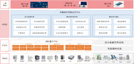 ②智能监控体系建设:通过能源生产、传输、消费端的三级计量布点监测能源流向与用量,并借助电力能源区块链技术,保障绿电属性可追溯、交易可信。
