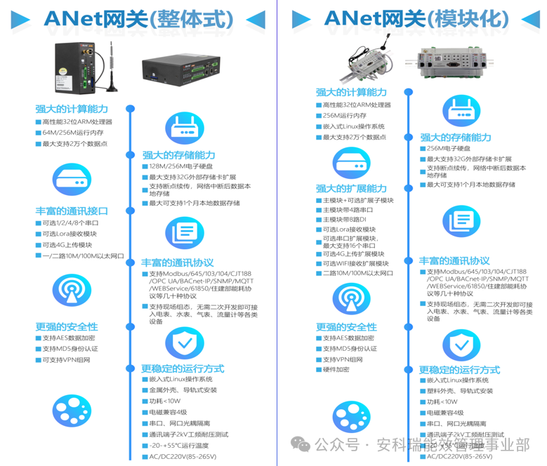ANet系列网关的多协议兼容性解决了工业互联网标准碎片化问题,实现了不同厂家设备的互联互通;边缘计算能力使数据处理和分析任务得以在本地完成,降低了云端负载,提高了系统响应速度;远程维护功能则大幅降低了系统运维成本,提高了问题处理效率。这些特性使得ANet系列网关在智能电表数据管理、配电自动化、分布式能源监控等多个场景中都能发挥重要作用。