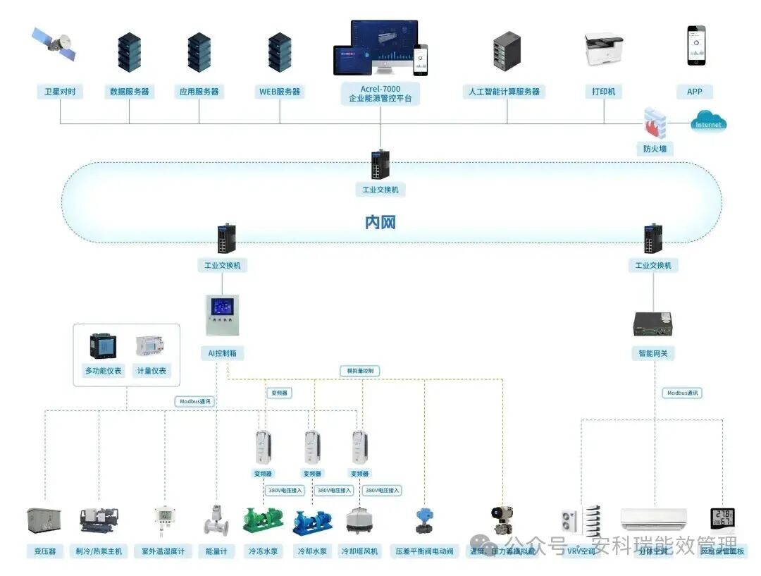 中央空调系统由冷热源系统与空气调节系统(末端风系统)组成,相同客观环境下,末端设备启停数量及风温、风速设定决定系统整体电耗;负荷调峰可通过中央空调 AI 调优实现,即结合 AI 算法实时预测冷 / 热负荷,调整主机、水泵、冷却塔风机的运行参数,搭配刚性与柔性调控策略,提升系统效率、降低电负荷,避免超需量。