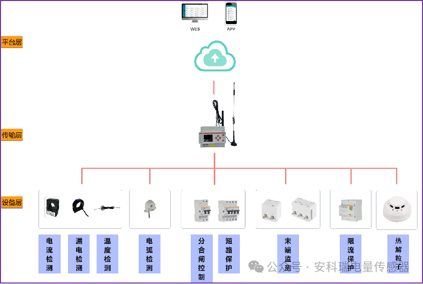 1)实时采集剩余电流、温度、电流、电压、功率等电气参数,及时发现漏电、过载、过压、欠压、升温异常等电气安全隐患并按照严重等级报警;