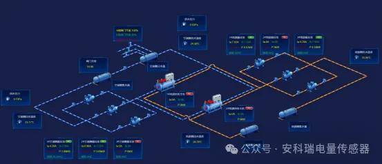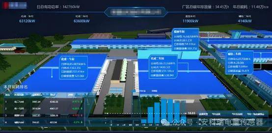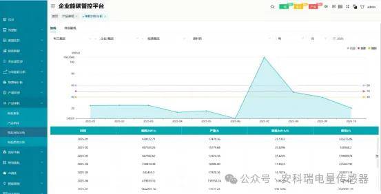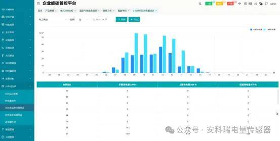 电能计量表计安装在主要配电节点、用能设备等处,综合能源管理平台实时采集用电数据,对用电数据进行逐时、逐日、逐月分析,并结合国家、行业标准,统计企业整体碳排放,为碳中和提供基础数据服务。企业用能总量数据和强度数据可上传至政府监管平台,满足政府碳排放监管要求。