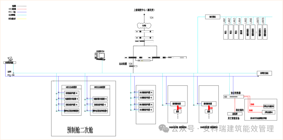 搭建完善的二次系统架构,涵盖远动装置、时间同步、电能质量监测、防孤岛保护、频率电压紧急控制等各类智能设备,实现对变压器、开关舱等核心设备的测控。