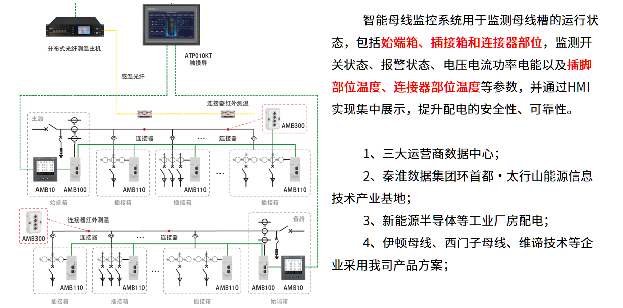 方案:接头用红外测温(AMB300)或光纤测温(AMB400),7×24小时扫描温度,异常秒级告警。