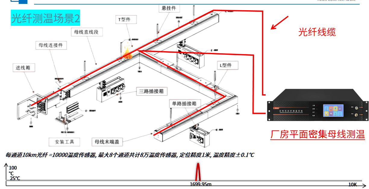 → 1根光纤覆盖10km母线(≈1万个测温点),精度0.1℃(医院手术室必选)