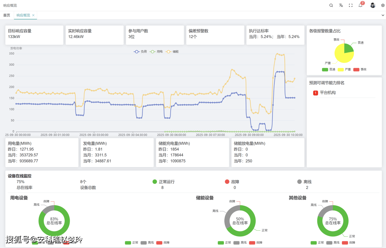聚合建模与分析:大数据分析与预测,精准把控负荷与发电趋势,辅助发电计划制定;围绕电网需求、资源特性、执行层级,评估响应能力,分解响应目标;量化调控结果,给出评估指标评分及评价,为调控结算提供依据。