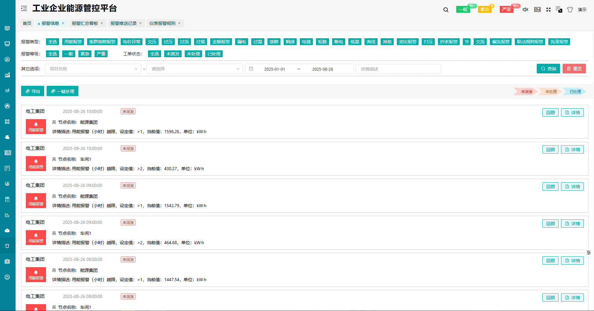 设备全生命周期管理:该功能集成了电力监控、远程控制与维保计划,实时监测设备运行参数,如电压、电流、温度等,就像为设备配备了一位 24 小时的专属医生,时刻关注设备健康。一旦设备出现异常状态,平台能秒级预警并联动停机,有效避免事故发生。