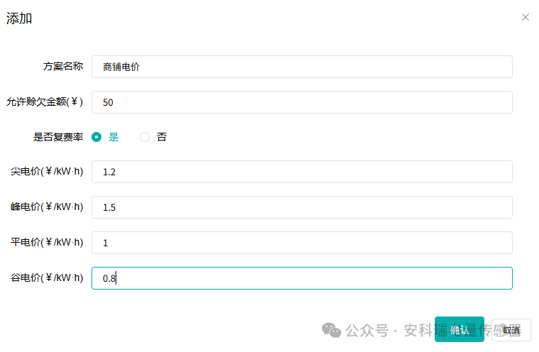 商铺场景:支持按业态类型、时段差异配置差异化电价与水价,兼容峰谷电价核算模式,适配商铺多样化计费需求。