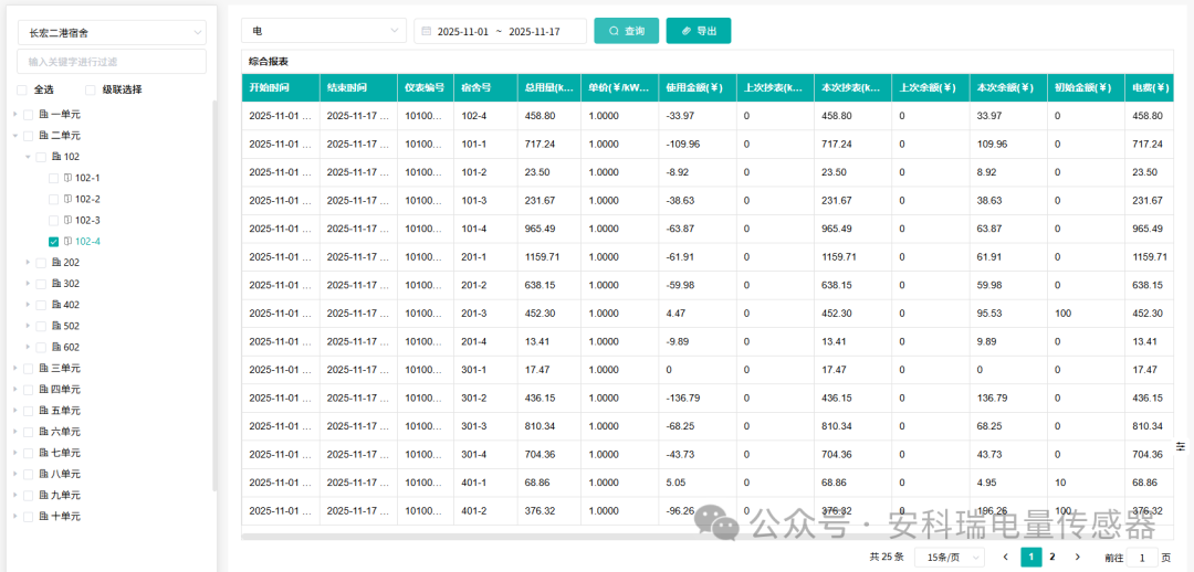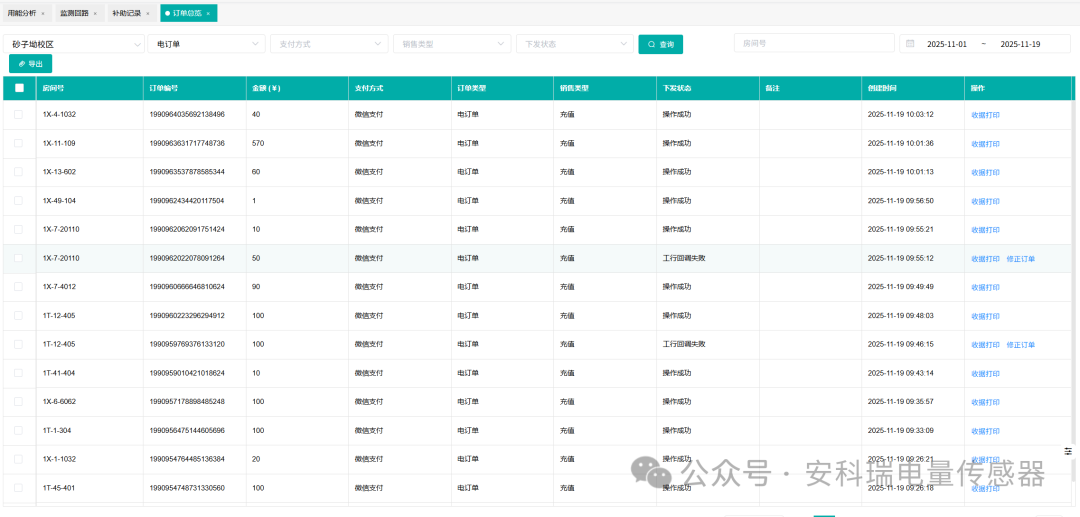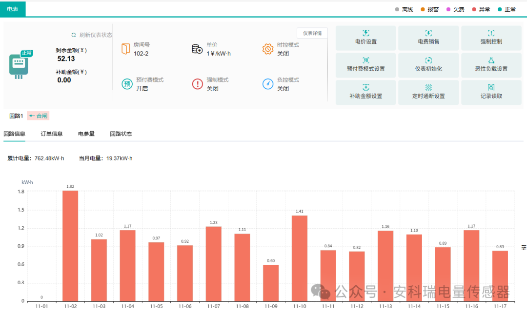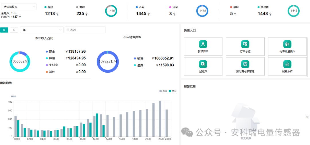 AcrelEMS-EDU 水电收费管理构建 “双场景准确计量、多模式灵活计费、全渠道便捷收缴" 的闭环体系,成功推动水电收费模式从传统 “人工核算 + 线下收缴" 向 “智能计量、自动核算、线上线下协同" 升级。不仅有效规范了收费全流程,大幅降低管理成本,更优化了用户缴费体验,为高校打造规范有序的校园收费生态筑牢坚实基础。