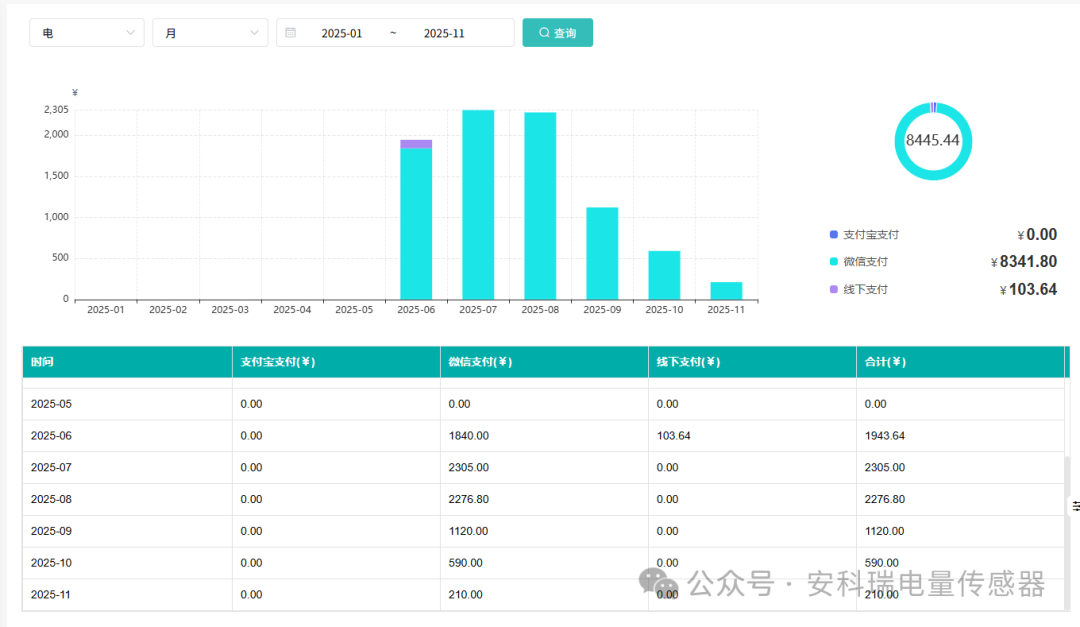 系统依托实时采集的计量数据与预设的计费标准,自动生成周期性账单(含日账单、月账单)。账单清晰列明用量、单价、总金额、优惠减免等核心信息,全程无需人工介入核算,既降低数据出错概率,又显著提升收费核算效率。