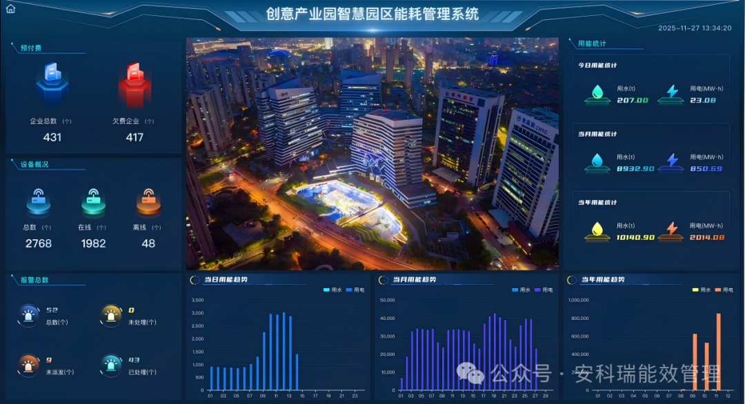 安科瑞能源物联网平台利用能效数据驱动园区运营,助力园区实现能耗精细化管理、运维降本增效与绿色低碳发展的战略目标。