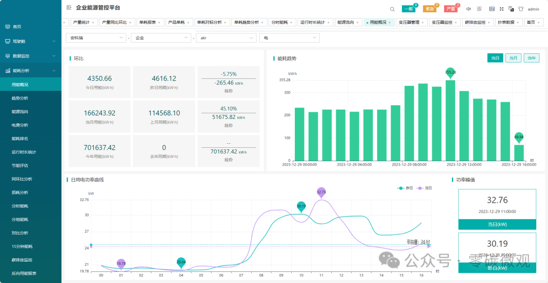 3.能耗分析精细化,降本增效看得见:通过ADW300采集的全量数据,AcrelEMS平台可自动生成企业级、车间级、设备级的能耗分析报告,精准识别高耗能环节。例如,平台监测发现某电子企业夜间设备待机能耗占比达12%,园区管理方据此建议企业优化设备待机模式,仅这一项措施便帮助该企业每月节省电费约1.8万元。截至2024年6月,园区整体用电量同比下降8%,其中12家企业通过能耗优化实现了10%以上的电费节约。