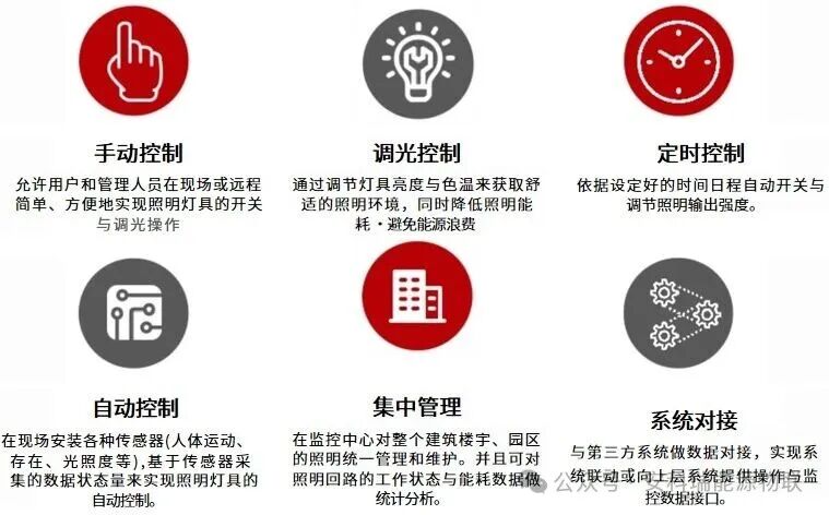 根据系统设计原则,智能照明通常由以下模块构成(不按功能列表描述,仅呈现系统逻辑):