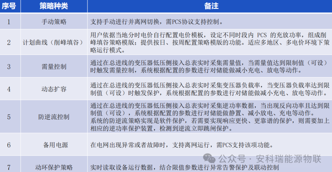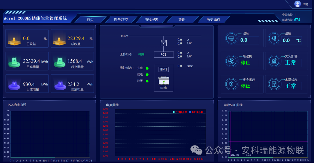 曲线报表:PCS功率曲线;SOC曲线;统计报表;历史曲线;控制策略; 削峰填谷、需量控制、防逆流控制等;历史事件