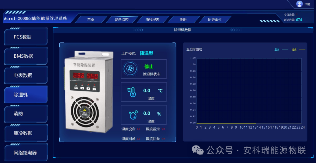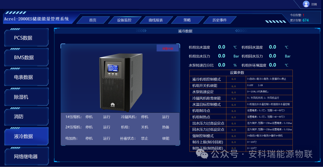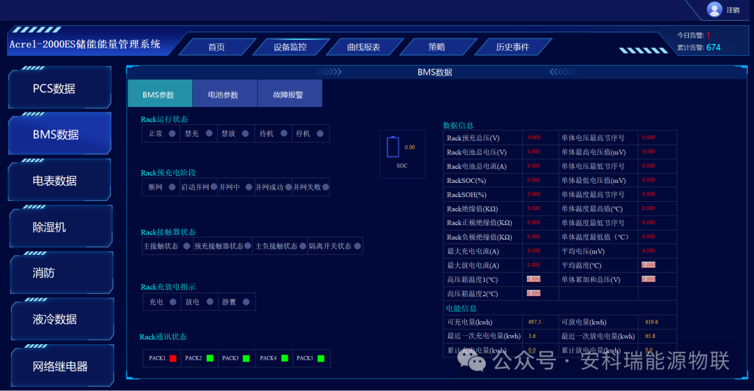 首页:设备监控; PCS; BMS;电表; 除湿机;消防主机; 液冷主机