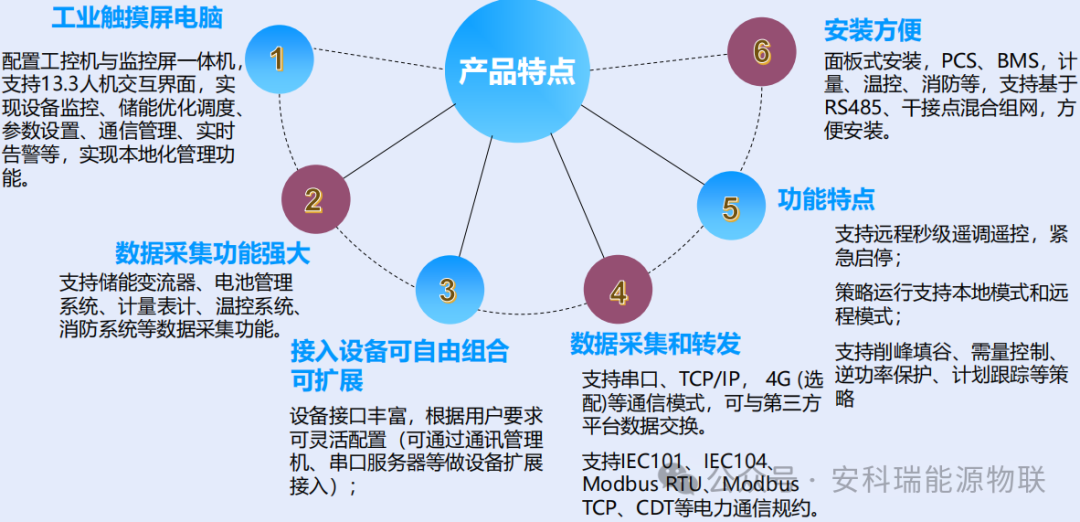 针对储能集装箱内部设备类型多、通信协议杂的特点,储能能量管理系统通常采用集中式架构设计,通过直采或经通信管理设备对PCS、BMS、电表及动环设备进行统一接入。