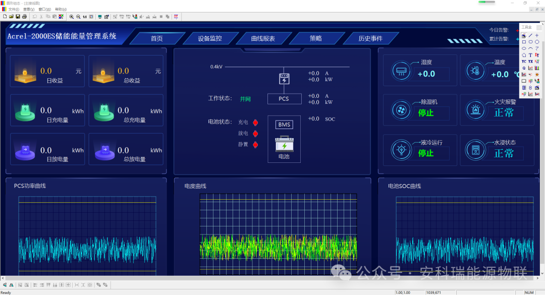 绘制:实时监测(PCS、BMS、电表、温湿度等);设备控制(温控、照明等)