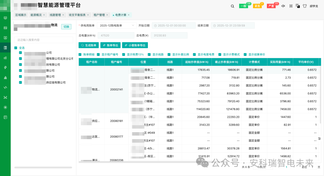 系统实时采集用电数据,自动完成电度电费、基本电费、公区分摊等多维度计算,账单一键生成,告别人工核算错误,过程透明可追溯。