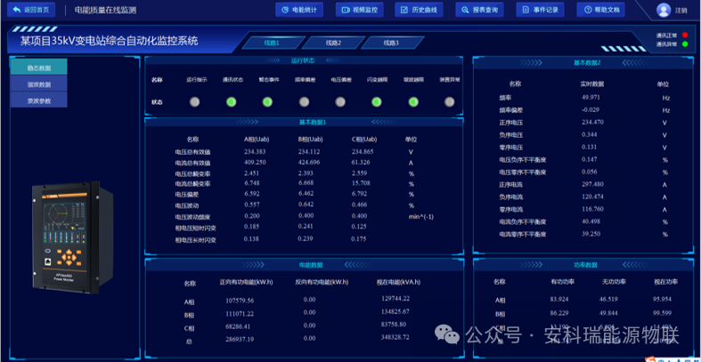 对整个系统范围内的电能质量和电能可靠性状况进行持续性的监测。如电压谐波、电压闪变、电压不平衡等稳态数据和电压暂升/暂降、电压中断暂态数据进行监测分析及录波展示,并对电压、电流瞬变进行监测。