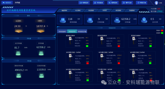 实时监测充电系统的充电电压、电流、功率及各充电桩运行状态;