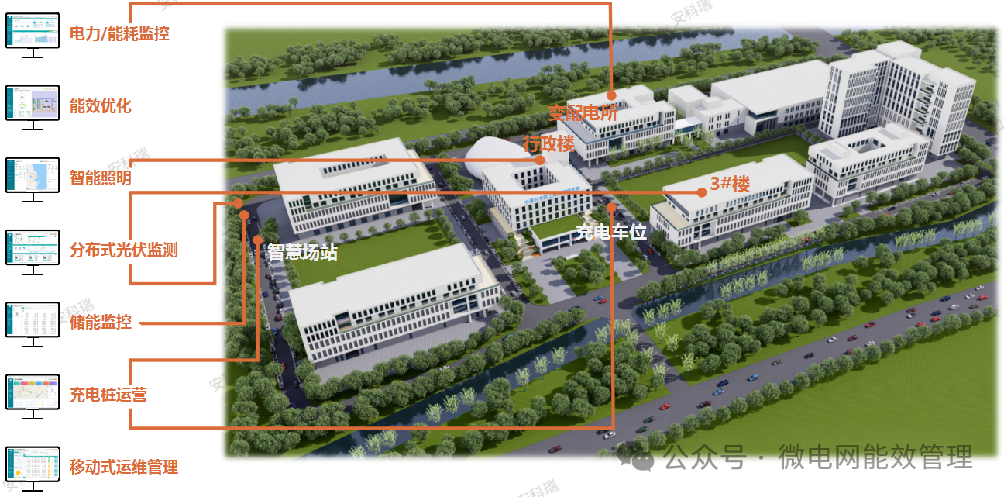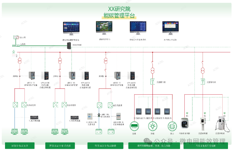 实施内容包括电力监控、能耗、运维、智能照明、光伏、储能和充电桩(电瓶车+汽车)