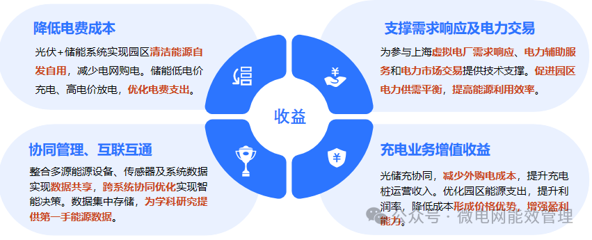 微电网通过对源、网、荷、储、充的实时监控、诊断告警、全景分析、有序管理与智能控制,实现不同目标下光储充资源灵活互动与优化运行,为用户带来安全、经济、环境和运营效率等多维收益: