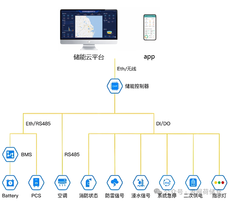 系统采用模块化设计,集电池系统、储能变流器(PCS)、智能液冷温控、多级消防、电池管理系统(BMS)及EMS储能控制器于一体。